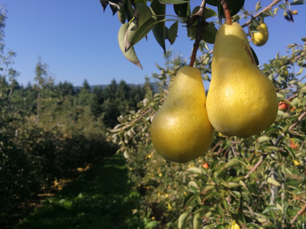 Auch die Ernte der Birnen hat bereits begonnen. Die Sorte „Clapps Liebling“ ist vor allem für ihren süßsäuerlichen Geschmack sehr beliebt und schmeckt auch wirklich vorzüglich. Ob für ein Kompott, einen Strudel oder einfach zum Reinbeißen.