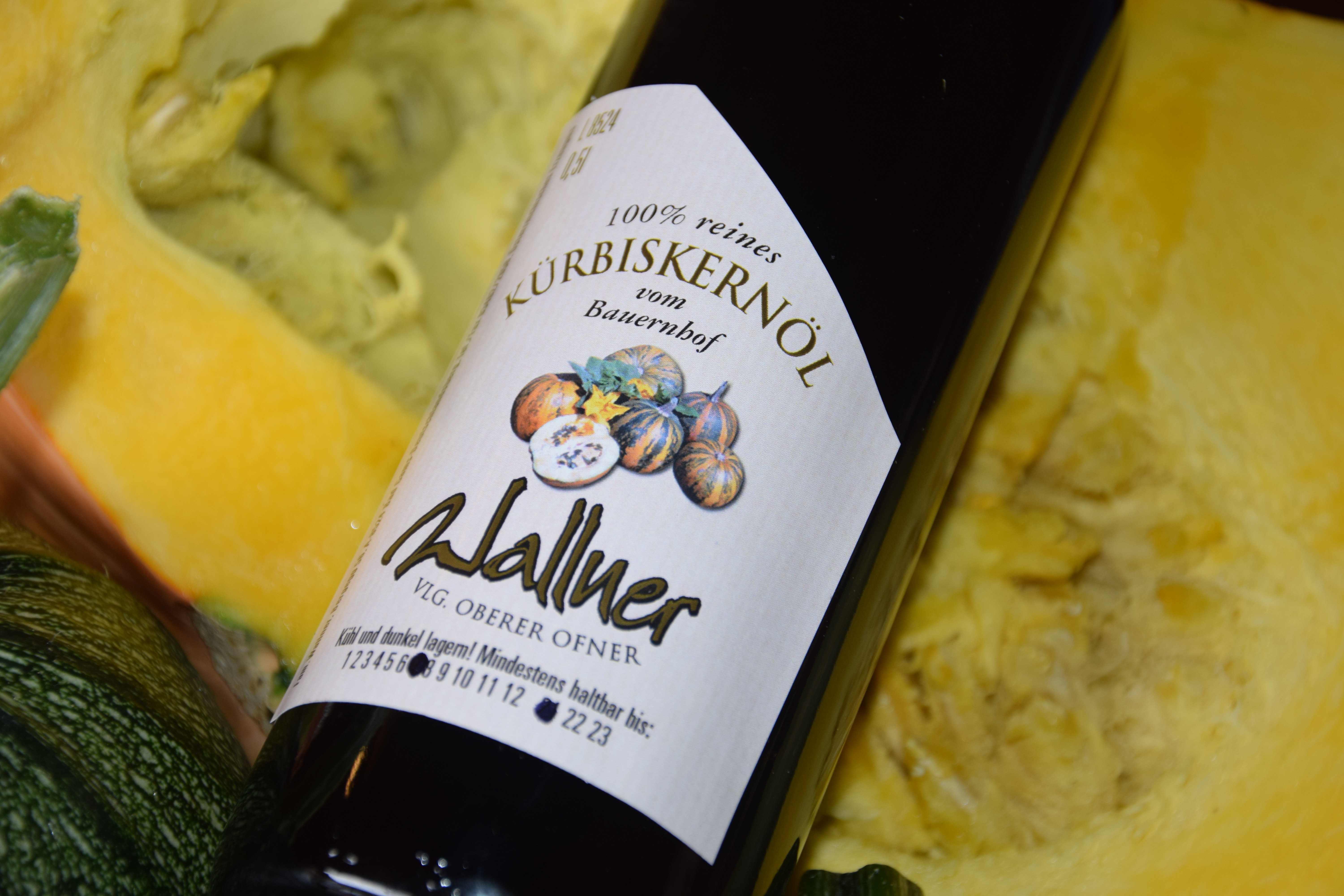 Wir produzieren köstliches Kürbiskernöl aus eigener Erzeugung